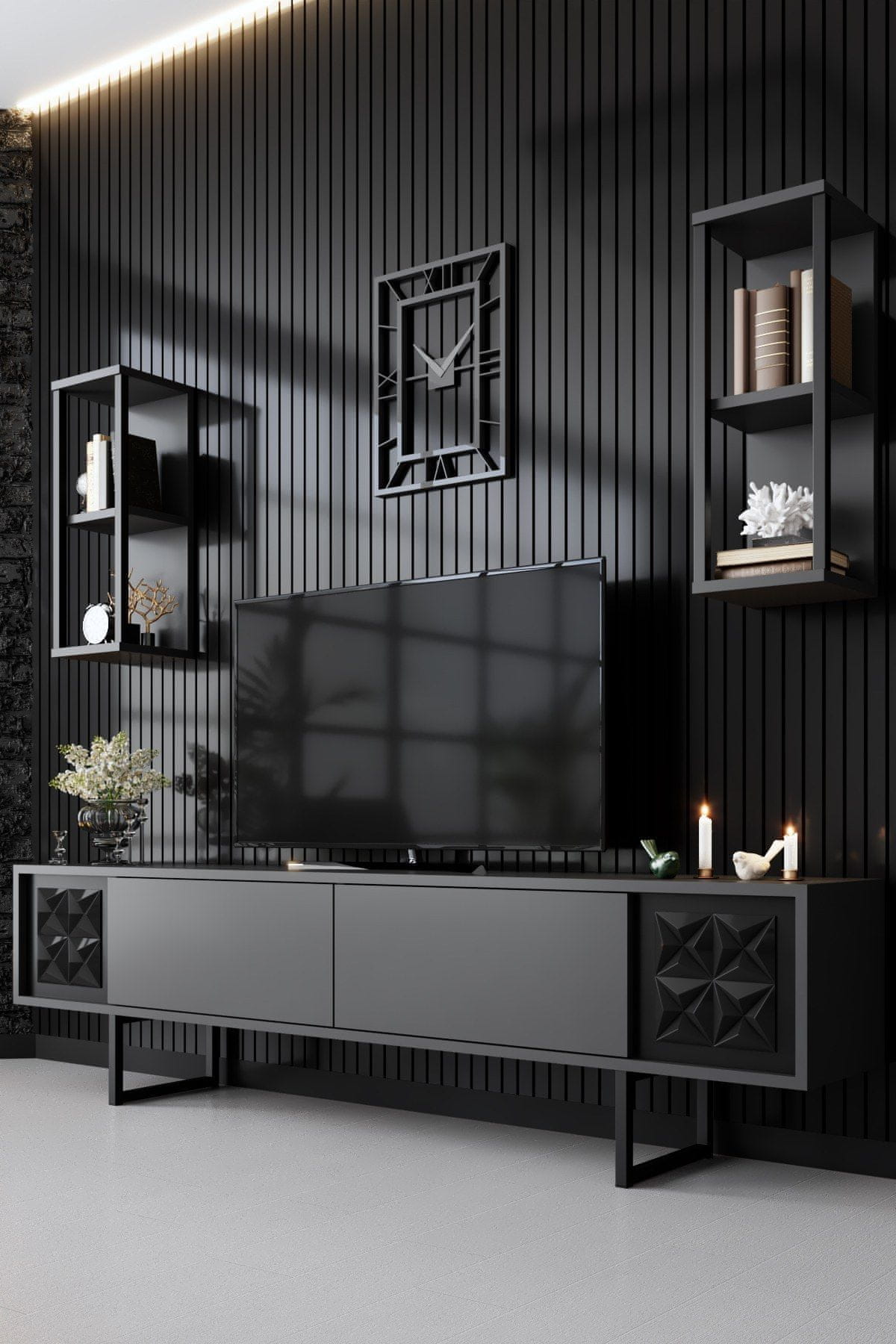 Woody Fashion Set namještaja za dnevnu sobu, Black Line Set - Anthracite, Black