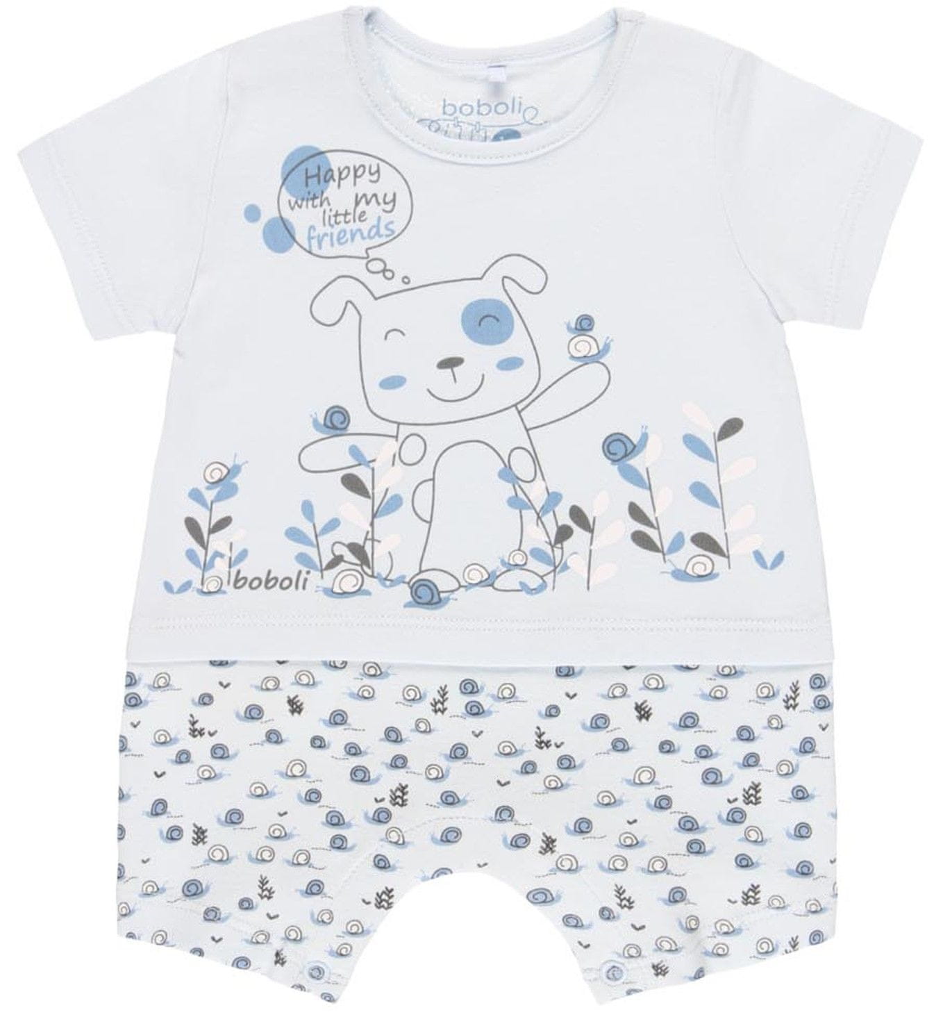 Muški ljetni kombinezon sa psom i puževima marke Boboli. Kombinezon je sašiven od visokokvalitetnog 100% pamuka, ugodan za nošenje i jednostavan za nošenje, zahvaljujući pričvršćenju između nogu može se vješati. Cijeli opis