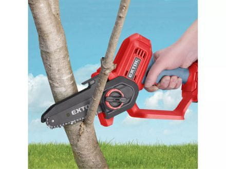 Jednoručna bežična motorna pila EXTOL PREMIUM Share20V 8891923 namijenjena je za orezivanje drveća i grmlja, manje skraćivanje drveća u vrtu ili radionici. Zahvaljujući maloj težini i ergonomskom dizajnu, posao se može obaviti jednom rukom. Pila ne uključuje bateriju ili punjač i dizajnirana je za SHARE20V 20V Li-ionski baterijski sustav, koji omogućuje korištenje jedne baterije za više alata.