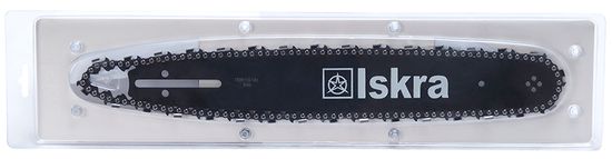 Set vodilice i lanca A3188–0, proizvođača iskra, sadrži vodilicu duljine 33 cm. Korak lanca je 8,255 mm. Lanac ima 56 zuba, a broj zubaca na vodilici je 11. |