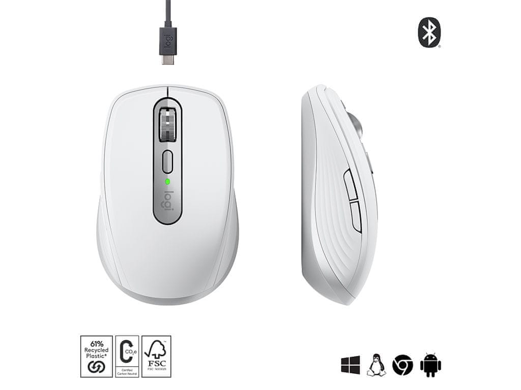 Logitech MX Anywhere 3S miš, Bluetooth, DarkField laser, siva