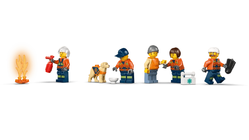 • Pribor: aparat za gašenje požara, pribor za prvu pomoć, prsluk za spašavanje, voki-toki, zdjela za pse, LEGO plamenovi.