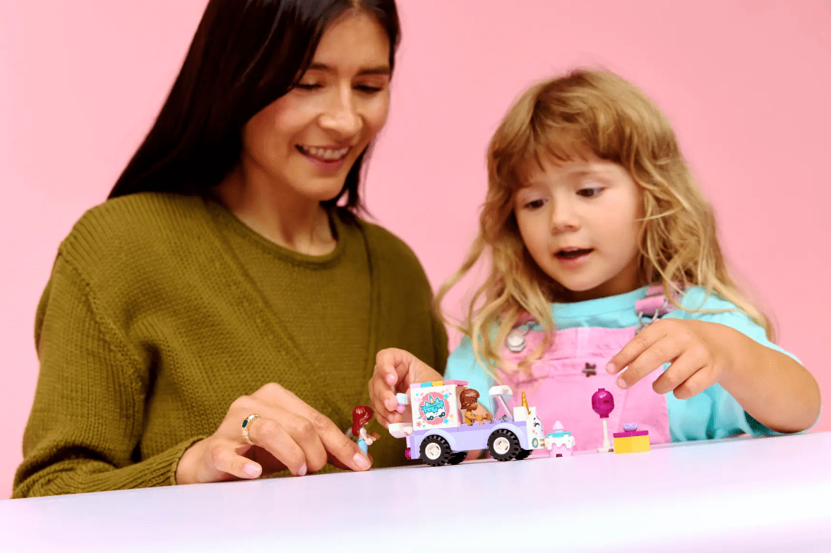Set Auto jednorog za dostavu torti donosi čaroliju u igru najmlađih. Glavna atrakcija je simpatično vozilo u pastelnim bojama, ukrašeno rogom i repom jednoroga. Djeca se mogu pridružiti Paisley i Leu u dostavi rođendanskih poslastica. Komplet je posebno osmišljen za početnike jer uključuje početnu kocku za lakše sastavljanje, te brojne dodatke poput torte, dara, balona i krafne koji potiču maštovitu igru uloga.