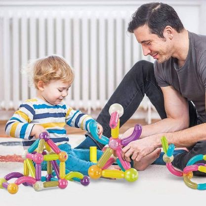 Kompleti SUPERBLOCK so sestavljeni iz barvitih magnetnih paličic in kroglic, ki pri otrocih spodbujajo različne miselne spretnosti, sposobnost reševanja problemov, simbolno mišljenje in zaznavanje barv. Ta komplet magnetnih igrač spodbuja prostorsko razmišljanje, izboljšuje koordinacijo rok in oči ter otrokom omogoča svobodno sestavljanje različnih oblik, kot so avtomobili, živali, hiše ali kar koli, kar vzbudi njihovo domišljijo in zanimanje.