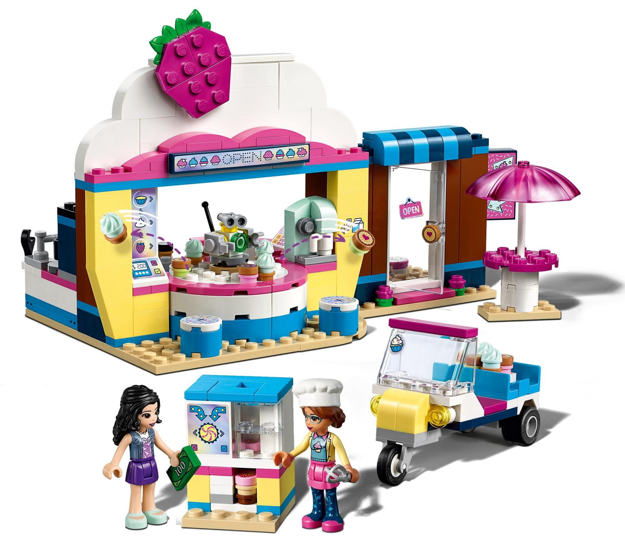 Lego Friends komplet Olivia i kafić s pecivima sadrži 335 komada kockica i primjeren je za djecu stariju od čest godina.