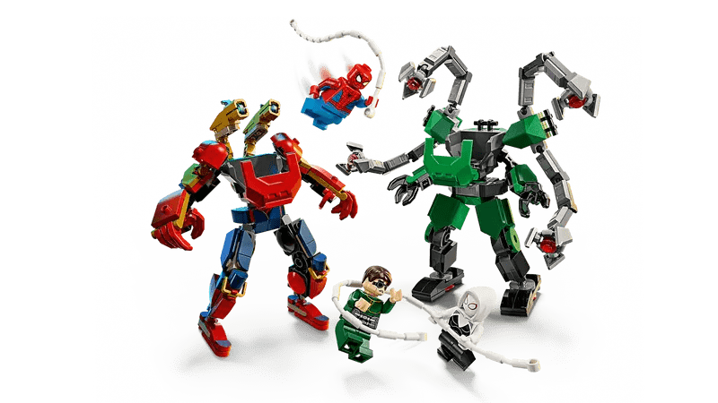 Ovaj komplet udvostručuje zabavu s dva impresivna robota. Spider-Manov robot dizajniran je u stilu Iron Spidera i ima ugrađena dva ispaljivača čepova (stud shooters) koji se aktiviraju pritiskom na gumb. Njegov protivnik je moćni robot Doc Ocka, opremljen s četiri potpuno pomična mehanička kraka koji mogu hvatati i napadati.