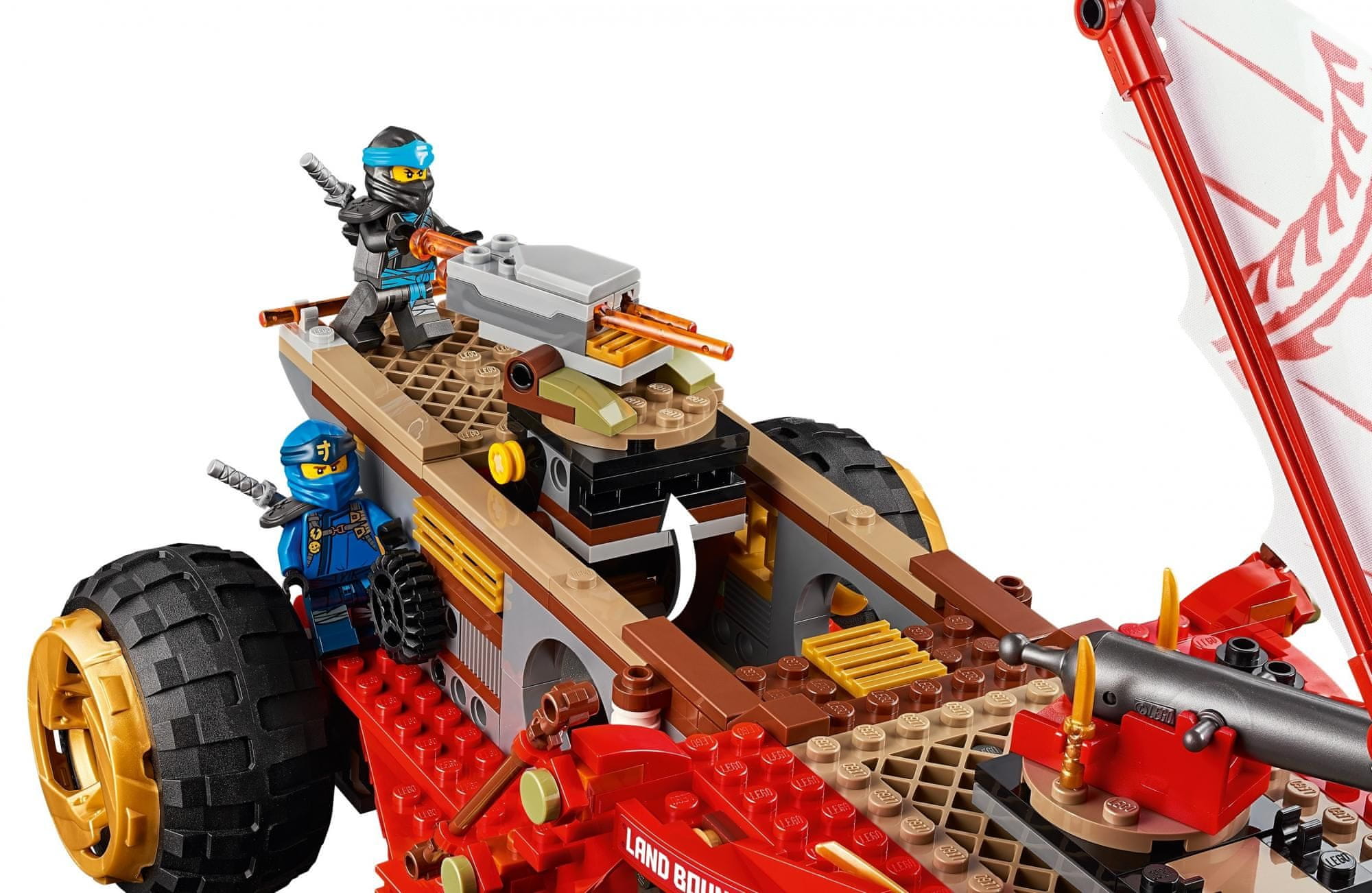 Ninja vozilo Nagrade za zemaljsku sudbinu uključuje kotače sa zlatnim naplatkom i funkciju upravljanja, 2 slike zlatnih zvijezda, odvojivi odjeljak, rotirajući pištolj za izbacivanje, pokretni izbacivač, 2 ukrašena jedra od blaga (uključujući 1 u odvojivom području) , sofisticirani interijer s kokpitom za dvije minifigure, par s dva držača pištolja, i kompjuterska igra, čajnik i stražnji dio s malom kutijom.