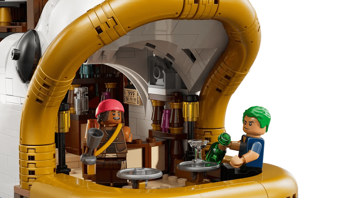 Set uključuje minifigure Luffyja, Zora, Nami, Usoppa, Sanjija, Zeffa, Garpa, Helmeppa, Kobyja i Mihawka. Set također uključuje autentične dodatke, uključujući 5 postera ‚Wanted‘, obilje hrane i pića, kultni odašiljač puža i Mihawkov prepoznatljivi brod. Za jednostavno sastavljanje, korisnici mogu koristiti aplikaciju LEGO Builder koja vam omogućuje zumiranje i rotiranje modela u 3D-u i praćenje napretka.