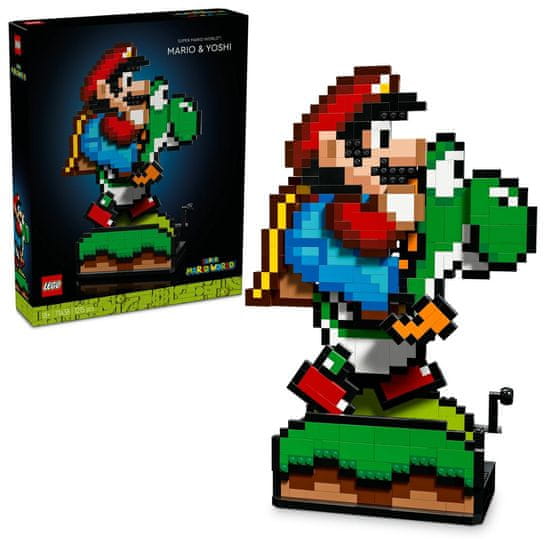 Probudite nostalgiju modelima iz ranijih generacija igre Super Mario™ koji će vas uveseljavati u zanimljivom kompletu za izlaganje Super Mario World™: Mario i Yoshi. Kolekcionarski komplet iz igre za Nintendo® može biti zabavan poklon iz linije LEGO® Super Mario™ za odrasle. U njemu su pikselizirane figure Marija i Yoshija, odličan ukras za dom ili ured obožavatelja. Okrenite ručicu da Yoshi potrči s Marijem na leđima i okrenite brojčanik da Yoshi isplazi jezik pa ga uvuče.