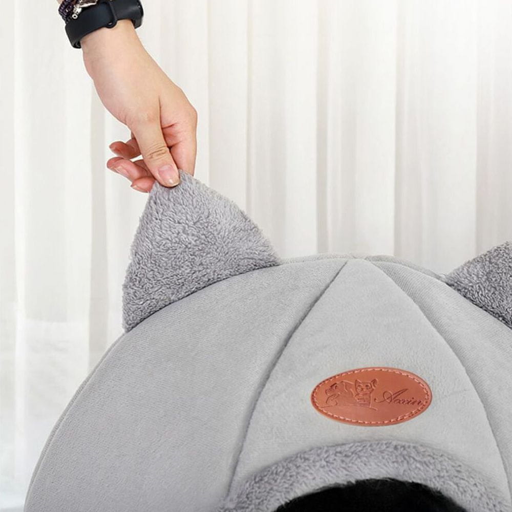Ležaj za mačke izrađen od mekanog i udobnog materijala koji podsjeća na malu i ugodnu kućicu. Ovo je savršeno mjesto za mačku koja voli vlastito zatvoreno sklonište. Materijal kreveta nije samo mekan i udoban, već je i otporan na ogrebotine i habanje. Kratki pliš od kojeg je napravljena kućica pruža vašoj mački ne samo toplinu, već i ugodnu mekoću, čineći je idealnim mjestom za opuštanje i odmor.
