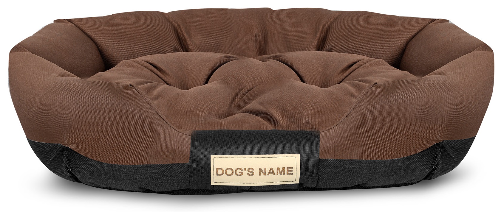 Ne zaboravite pri nakupu navesti imena svojega psa, inače postelja može prijeći prazno oznakom. Mjesto za ime vaše ljubljene je na prednjoj strani postelje.