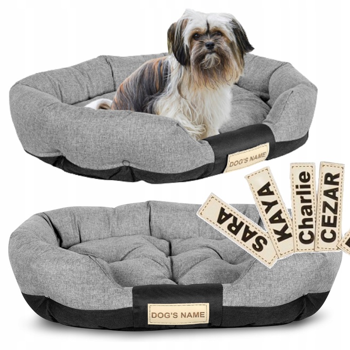 Ne zaboravite pri nakupu navesti imena svojega psa, inače postelja može prijeći prazno oznakom. Mjesto za ime vaše ljubljene je na prednjoj strani postelje.