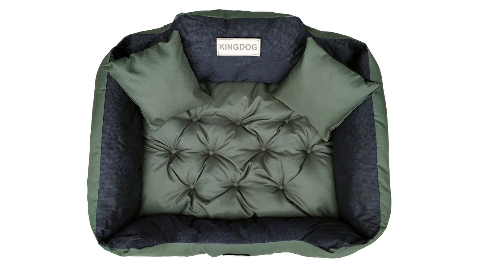 Trpežna VODPROOF passion postelja KINGDOG u tamnozelenoj boji, PERSONALIZIRANA s imenom vašeg ljubljenčka.