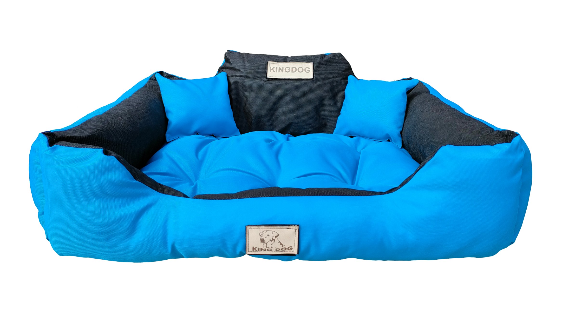 Trpežna VODPROOF PASSION postelja KINGDOG u modri boji, PERSONALIZIRANA s imenom vašeg ljubljenčka!