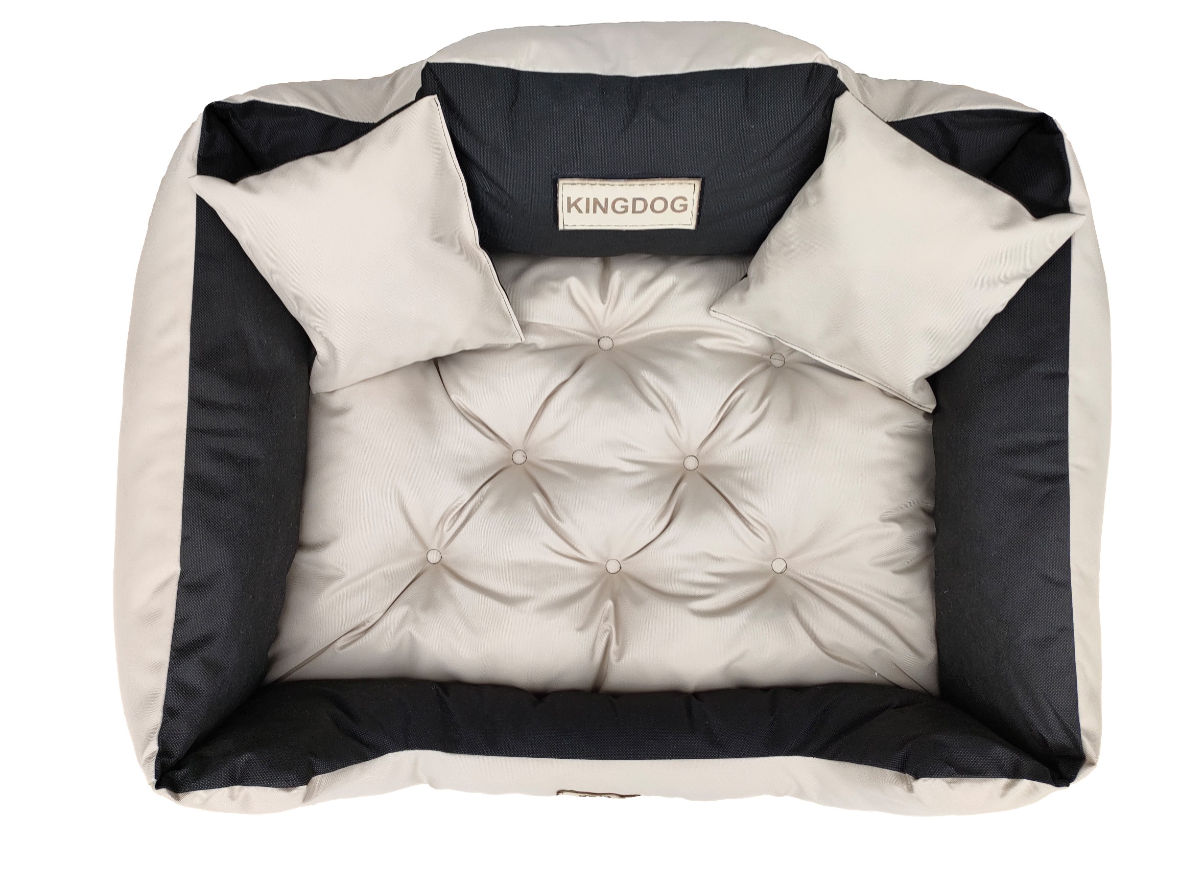 Trpežna VODPROOF passion postelja KINGDOG u bež boji, PERSONALIZIRANA s imenom vašeg ljubljenčka.