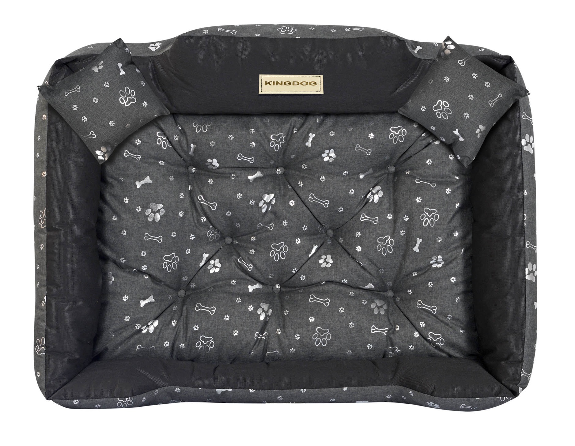 Trpežna VODPROOF passion postelja s uzorkom KINGDOG SILVER BONES, PERSONALIZIRANA s imenom vašeg ljubljenčka.