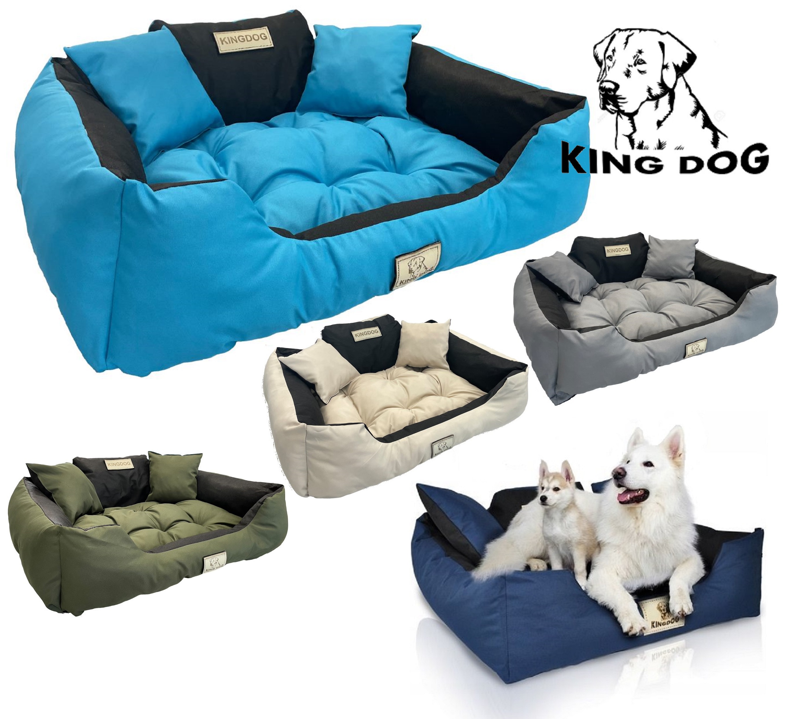 Trpežna VODPROOF PASSION postelja KINGDOG u modri boji, PERSONALIZIRANA s imenom vašeg ljubljenčka!