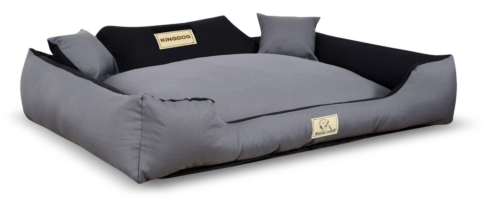 SNEMLJIVA z zadrgo, protivdrsna strast postelja KINGDOG u temno sivi boji, PERSONALIZIRANA s imenom vašeg ljubljenčka.