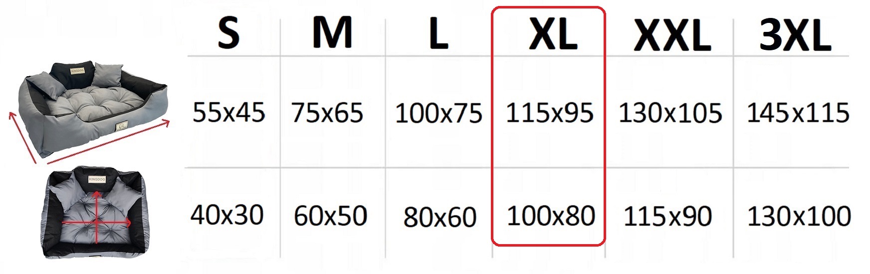- Notranje dimenzije: 100 × 80