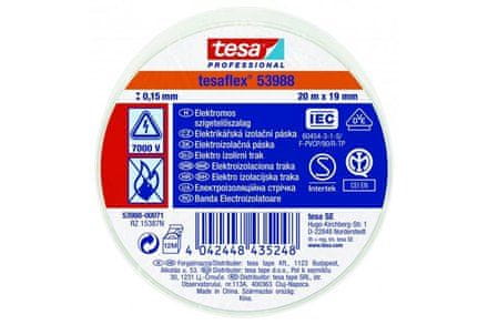 Tesa Električna izolacijska traka Electrical insulating tape PVC 53947, IEC, 20 m x 19 mm, white
