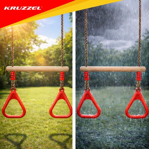 Kombinacija drva, izdržljivih užadi i metalnih komponenti osigurava da proizvod može izdržati i intenzivniju upotrebu. Pogodan je za svakodnevnu igru, kako na otvorenom tako i u zatvorenom prostoru.