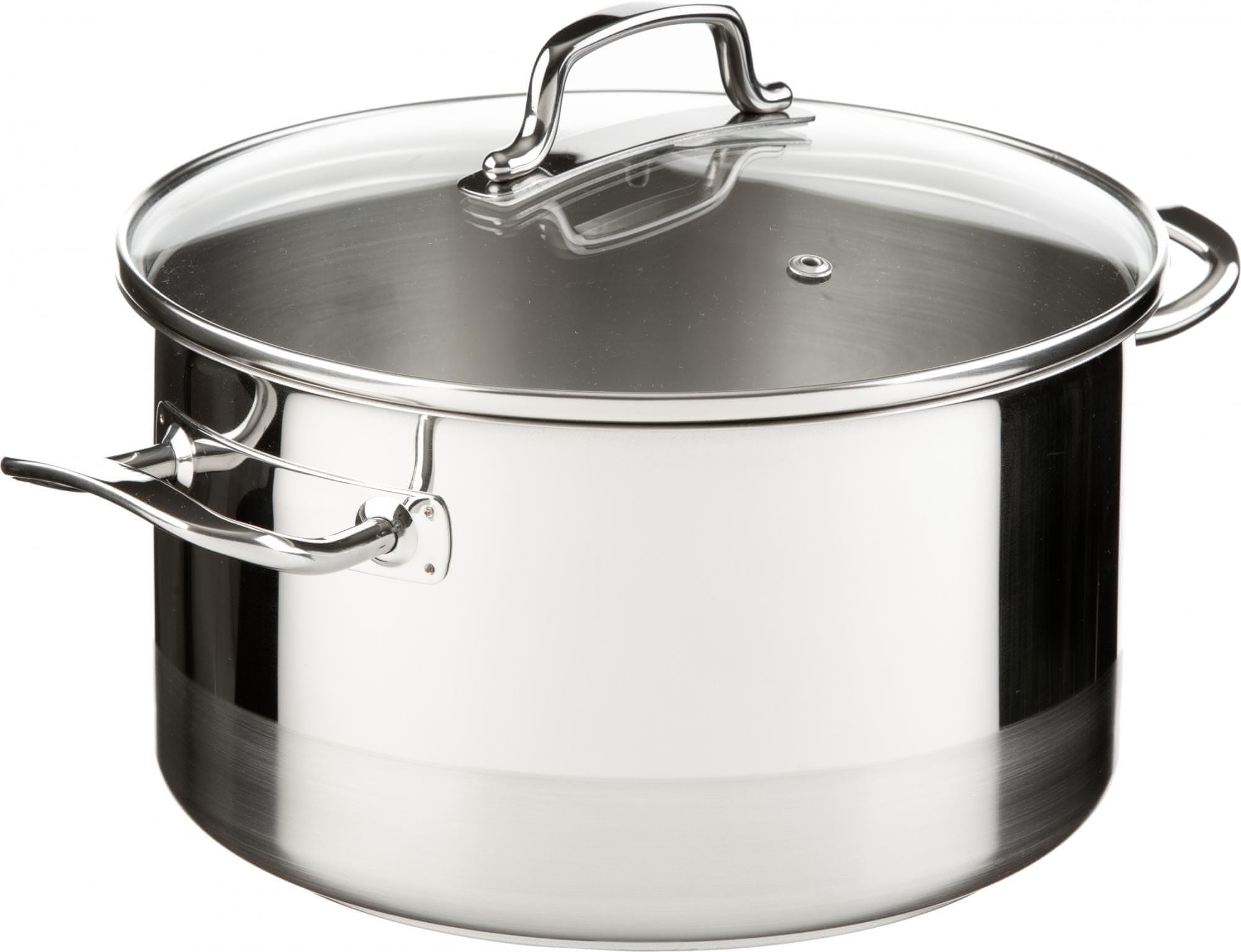 Zeon lonac promjera 28 cm i volumena 8,6 l pogodan za vrste ploča za kuhanje: električna keramička plinska indukcija specifikacije proizvoda: nehrđajući čelik poklopac od nehrđajućeg čelika plastične ručke do 220°C trostruko dno s aluminijskim limom.