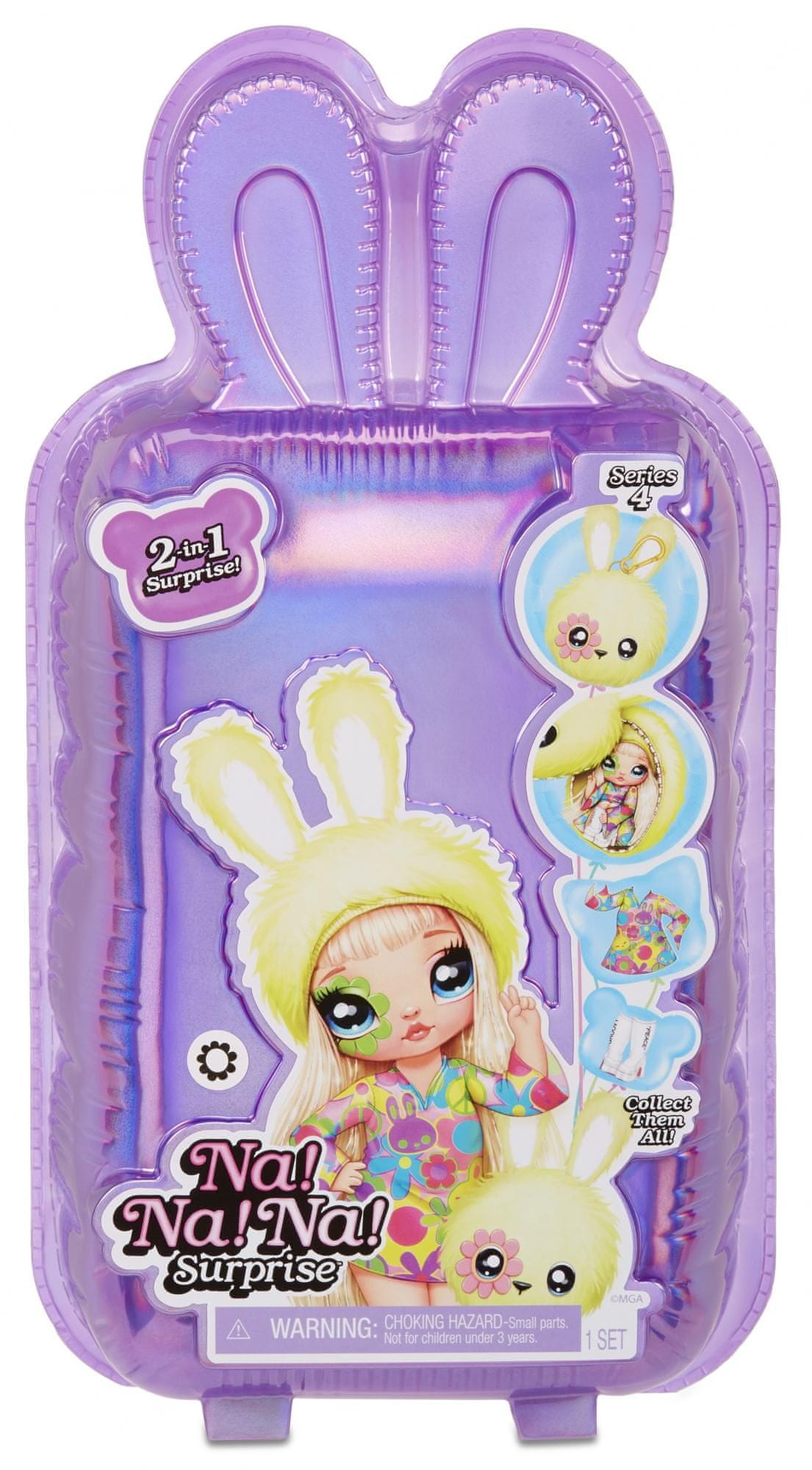 Na! Na! Na! Iznenađenje je nevjerojatna meka moderna lutka skrivena u životinji koja se može pričvrstiti na ruksak ili torbicu. Lutka ima lijepe oči i duge trepavice. Cijeli opis