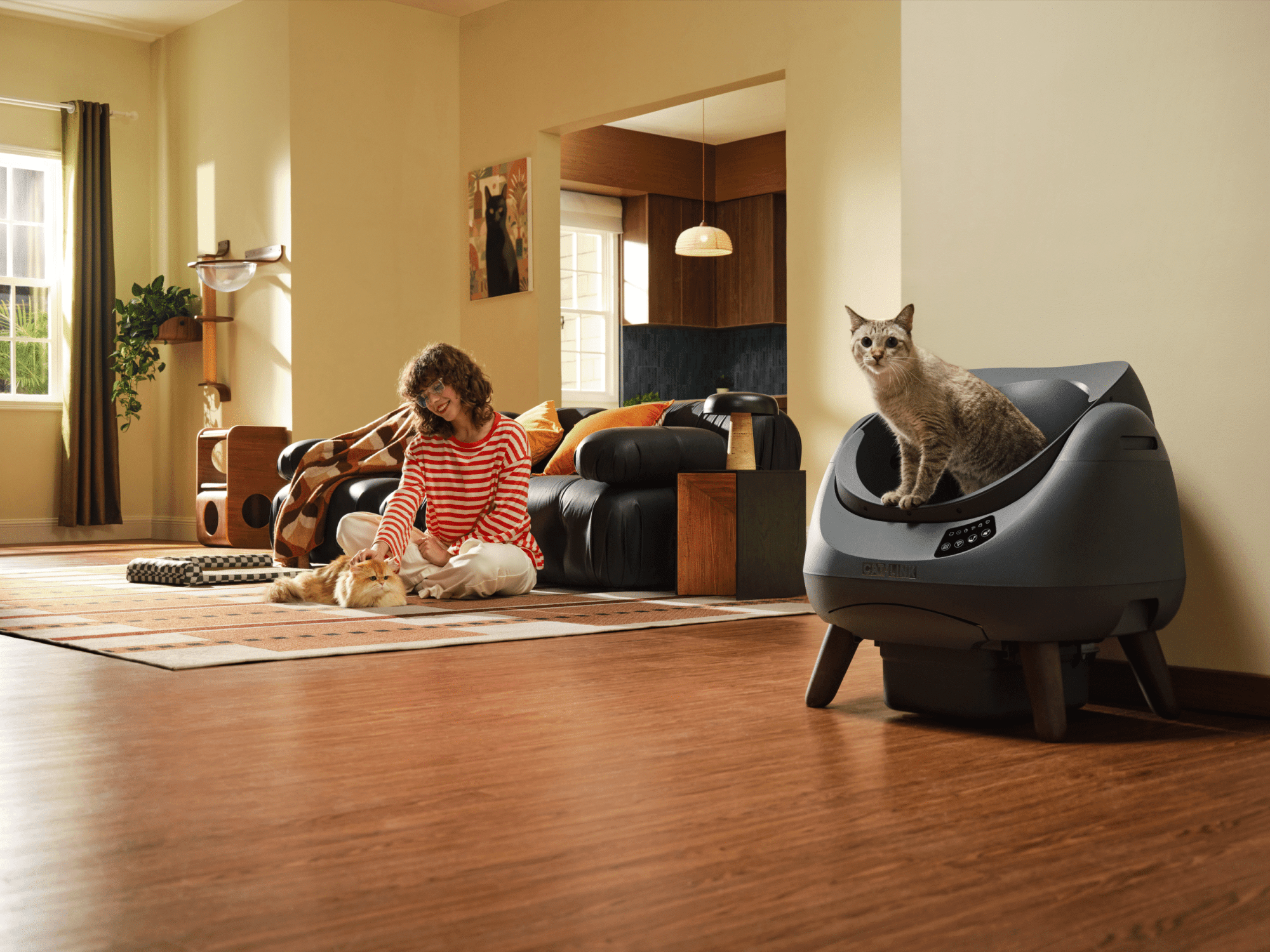 CATLINK OPEN-X dizajniran je imajući na umu prirodno ponašanje mačaka i bezbrižno korištenje za vlasnike. Kombinira naprednu tehnologiju i promišljen dizajn koji mačkama omogućuje prirodno i opušteno korištenje. Otvorena i prostrana komora s pogledom od 360° omogućuje mački slobodno kretanje te jednostavan ulazak i izlazak, što smanjuje stres i povećava prihvaćanje WC-a čak i kod većih ili osjetljivijih mačaka. Zbog otvorenog dizajna, WC je prikladan i za domaćinstva s više mačaka.