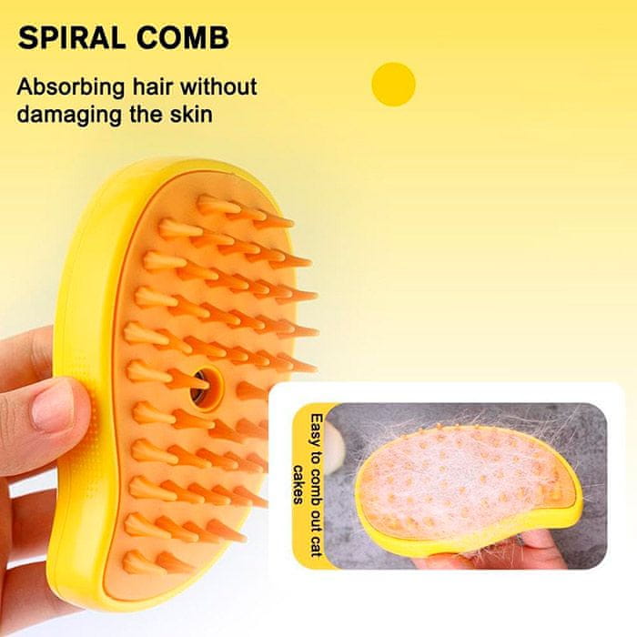 Netscroll Parna četka za mačke i pse, električna masažna četka s USB punjenjem, nježno uklanjanje dlake, ergonomski dizajn, Brushy