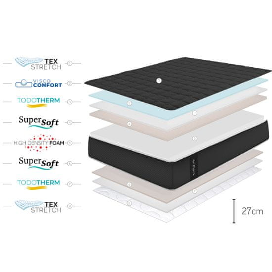 Madrac Air Black ima diferencirane višezonske zone udobnosti za savršenu raspodjelu težine, osiguravajući optimalnu fleksibilnost bez točaka pritiska.