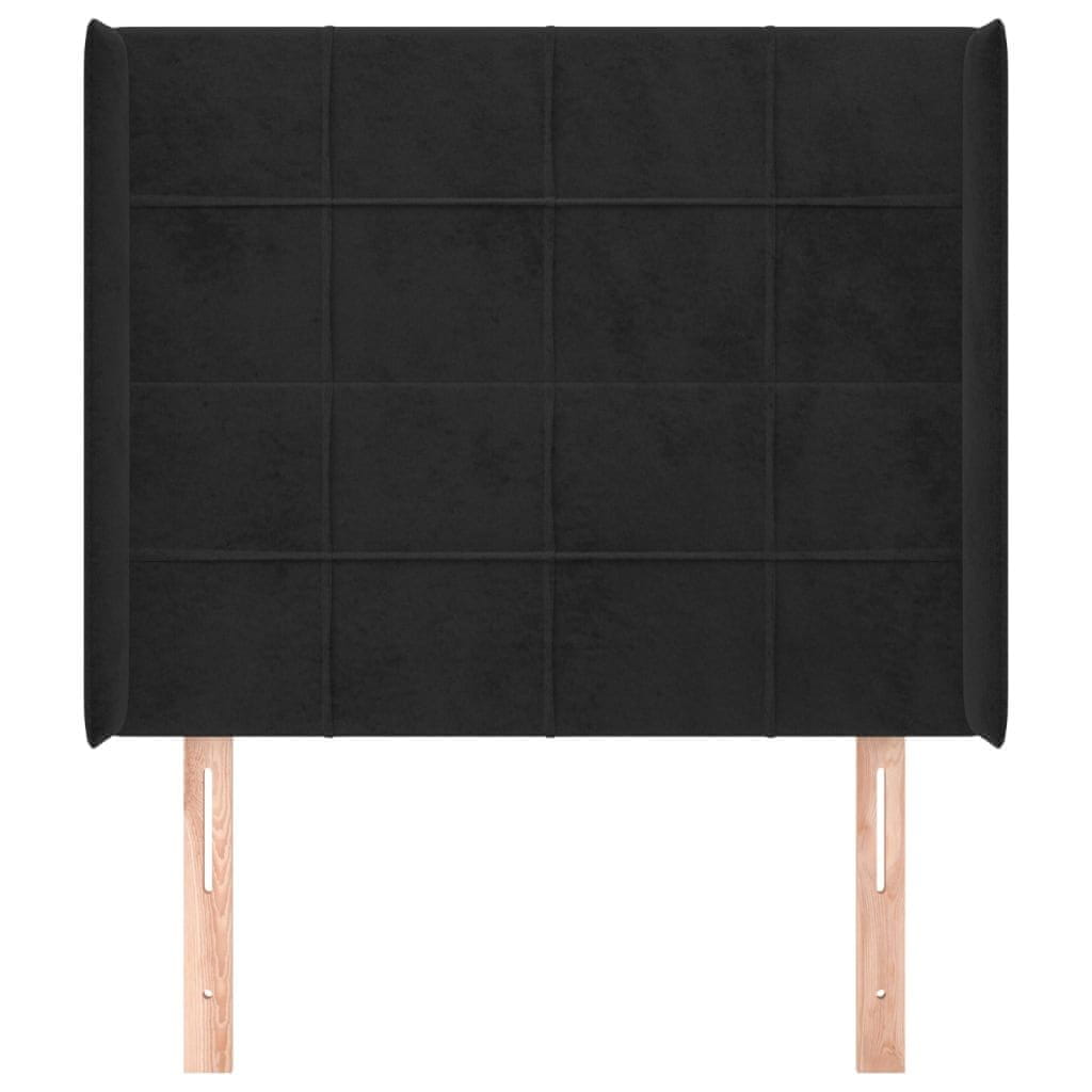 Vidaxl Uzglavlje s ušima crno 103x16x118/128 cm baršunasto