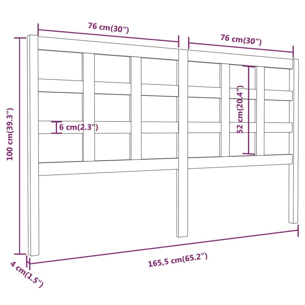 Vidaxl Uzglavlje za krevet crno 165,5 x 4 x 100 cm od masivne borovine
