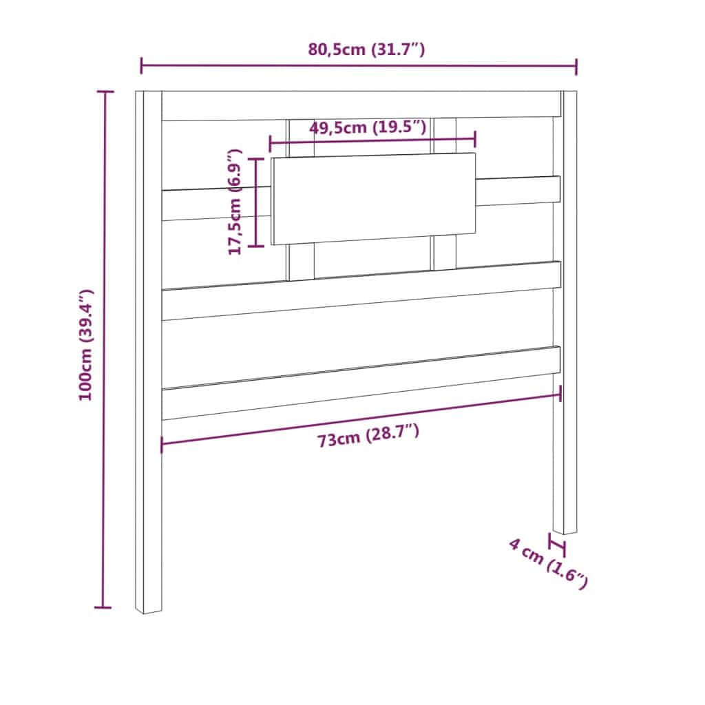 Vidaxl Uzglavlje za krevet crno 80,5 x 4 x 100 cm od masivne borovine
