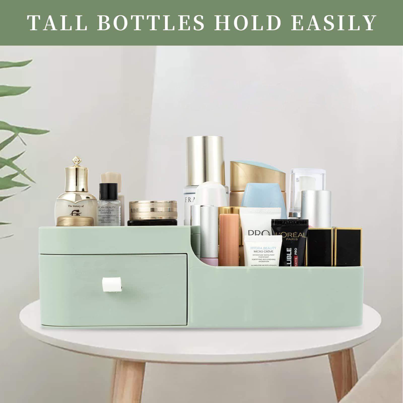 Nikcorp Organizator za stol s ladicom za kozmetiku, višenamjenski spremnik za šminku, kreme i pribor, zeleni, 26x17 cm