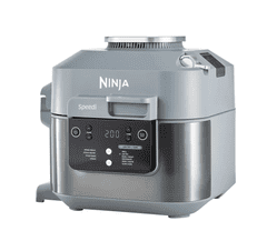Električni roštilj Ninja koji kombinira vanjski roštilj, dimilicu i vrućozračnu fritezu. 7 programa.
