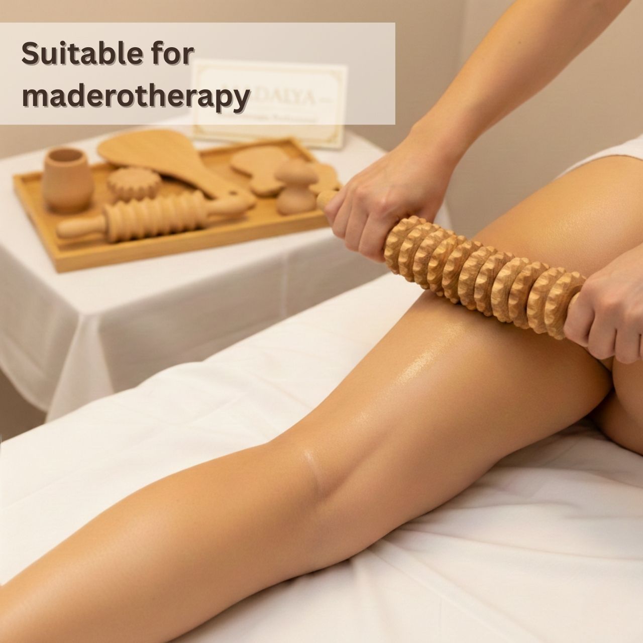 Valjak upotrebljavajte za anticelulitnu masažu, tretmane maderoterapije, opuštanje mišića i redovitu njegu tijela. Prikladan je za masažu bedara, stražnjice, nogu, bokova i drugih dijelova tijela te može pomoći podržati cirkulaciju i smanjiti osjećaj teških ili natečenih nogu.