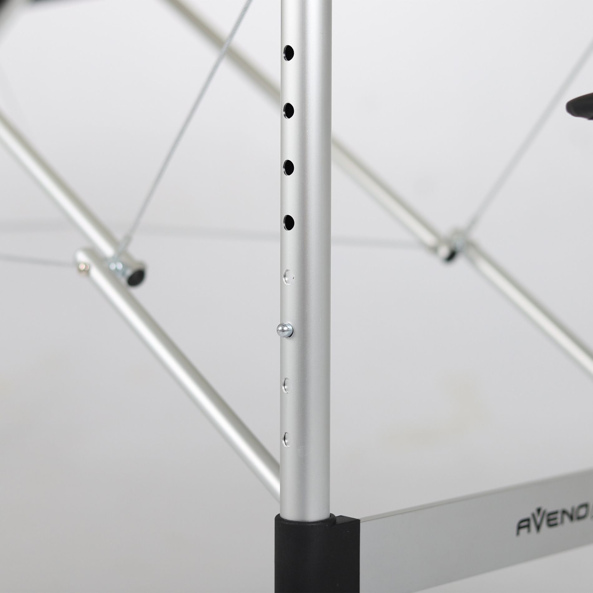 Sigurnost i stabilnost ključni su tijekom masaže. Aluminijski masažni stol opremljen je protukliznim nogama koje osiguravaju čvrsto stajanje na bilo kojoj površini. Podesiva visina ležaljke omogućuje prilagodbu njezine visine prema potrebama masera, što osigurava ergonomičan i udoban rad. Zahvaljujući pojačanju čeličnim užadima i sigurnosnim klinovima na svakoj potpornoj nozi, može podnijeti teret do 250 kg.
