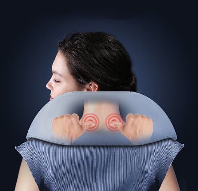 Naipo inovativni uređaj za masažu masira vaš vrat i ramena. Udobno se omotava oko vaših ramena i nudi podesivu duljinu naramenice, koja se prilagođava veličini nositelja. Opremljen je s četiri veće i četiri manje kuglice/čvora, koji oponašaju pokrete pravog masažera. Ritmičnim pokretom oslobađaju napetost i ukočenost mišića. Osim toga, masažne loptice zagrijavaju se na ugodnu temperaturu, što dodatno pridonosi opuštanju napetosti i smanjenju umora. Elastična tkanina masažnog uređaja je nježna prema koži i ne uzrokuje neugodno trenje tijekom rada masažnih kuglica. Tkaninu možete jednostavno skinuti i tako se pobrinuti za održavanje i higijenu kućišta. Uređaj ima dodatnu torbu za lakše nošenje.