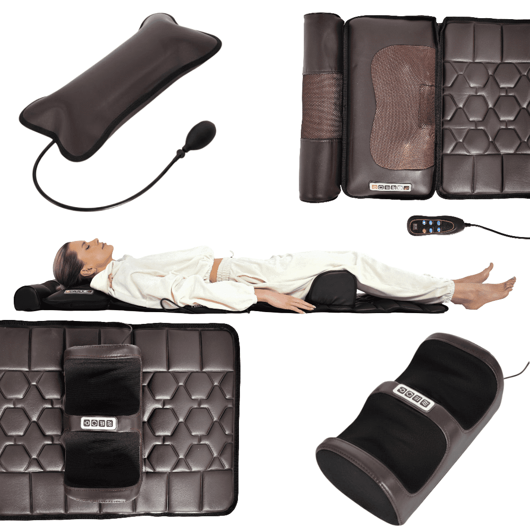 Masažna podloga s grijanjem. Luksuzna podloga (175×50 cm, smeđa) s 10 vibracijskih motora za masažu cijelog tijela (vrat, leđa, noge). Funkcija grijanja ublažava napetost i poboljšava cirkulaciju. Udobnost uz podesivi zračni jastuk i daljinsko upravljanje. Profesionalna masaža u vašem domu. Cijeli opis
