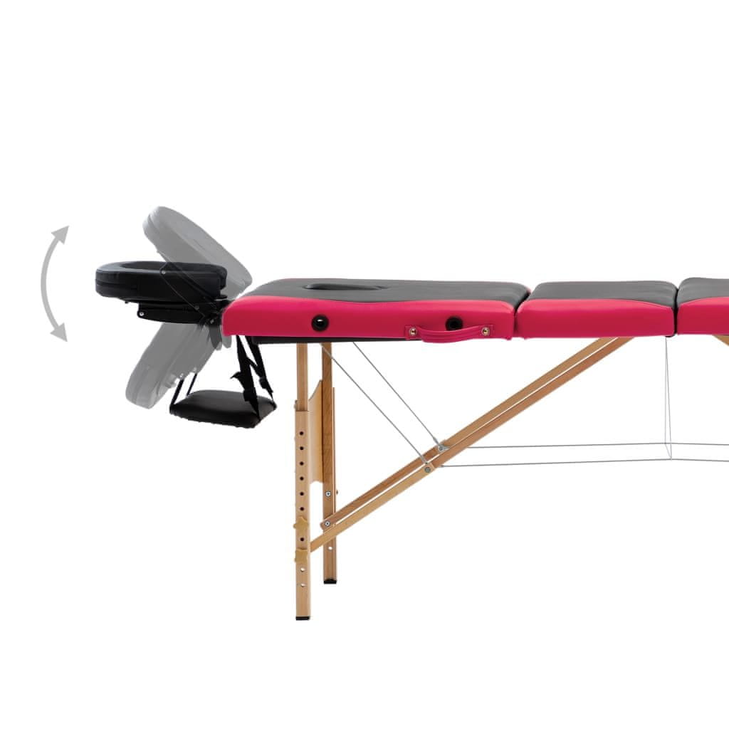 Vidaxl Sklopivi stol za masažu s 4 zone drveni crno-ružičasti