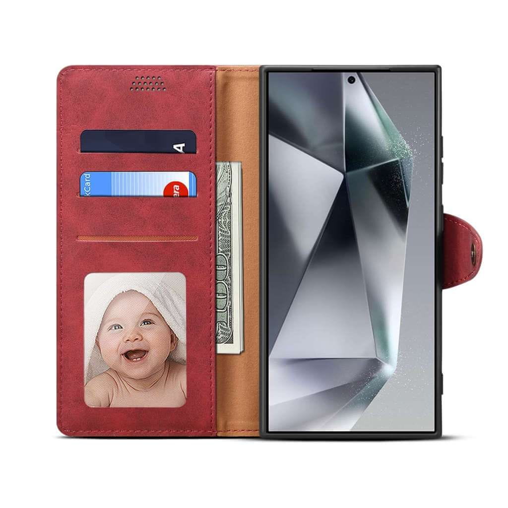 LENUO Usnjen ovitek za Samsung Galaxy S24 Ultra, klapovni, crveni