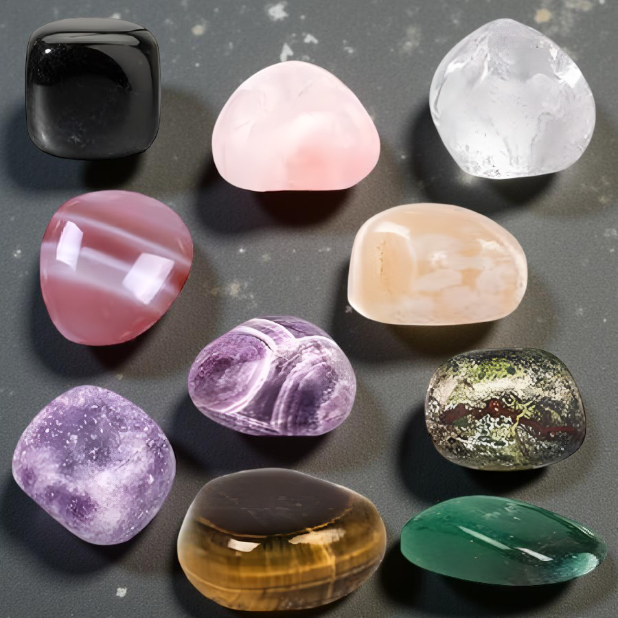 - Sadržaj Seta: Lepidolit, Crveni Ahat, Kamen Zmajeve Krvi, Crni Opsidijan, Ružičasti Kvarc, Gorski Kristal, Zeleni Aventurin, Trešnjin Ahat, Amethyst Chevron, Tigrovo Oko