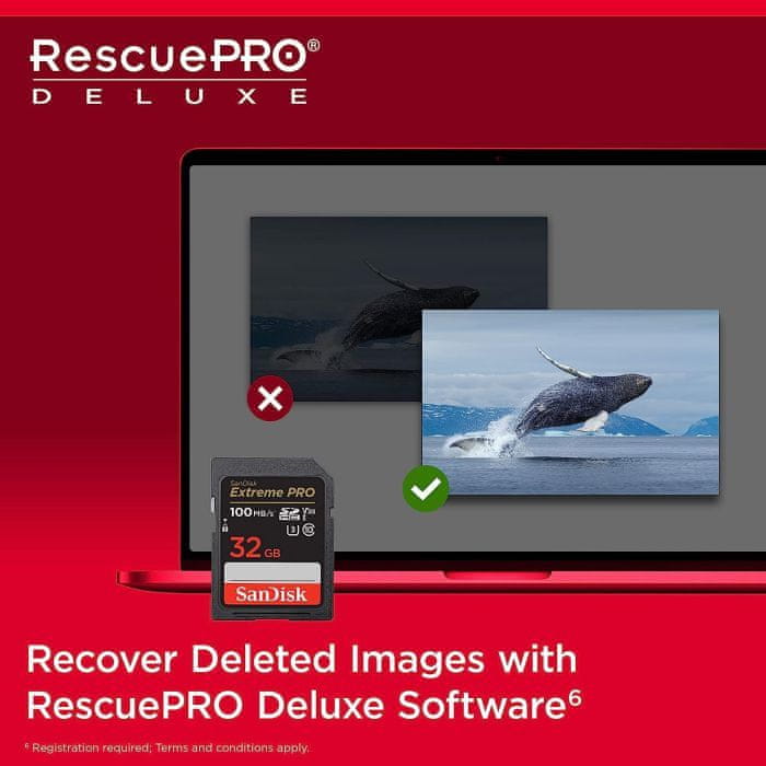 Uključuje ponudu za softver za oporavak podataka RescuePRO® Deluxe za razdoblje od 2 godine4, koji vam omogućava oporavak izbrisanih slika.
