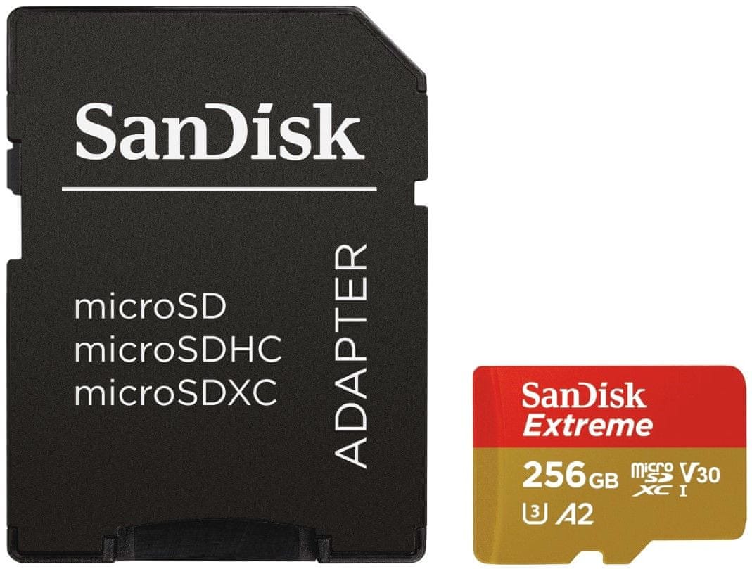 SanDisk memorijska kartica Extreme Micro SDXC 256GB A2 C10 V30 UHS-I + adapter (SDSQXA1-256G-GN6MA)