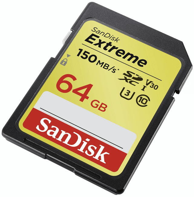Memorijska kartica SanDisk Extreme osigurava kvalitetnu izvedbu što omogućuje nadzor nad kreativnosti. Ima brzinu snimanja do 60 MB/s i čitanja do 150 MB/s te snimanja UHS razreda 3 (U3), što omogućuje snimanje u očaravajuće visokoj rezoluciji 4K UHD videa. Odlikuje ju kapacitet 64 GB.