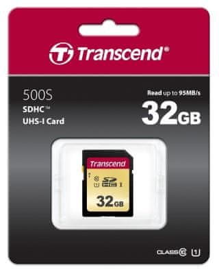 Transcend SDHC memorijska kartica 500S, 32 GB, 95/60 MB/s, MLC, C10, UHS-I U3, V30