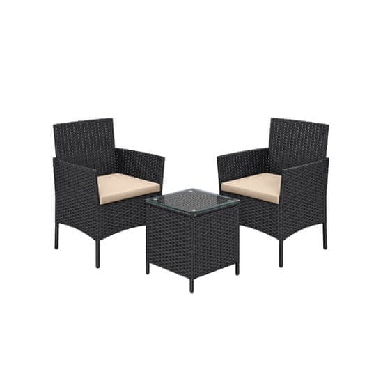 Songmics Set vrtnih garnitura za sjedenje s stolom i 2 stolice 565x545x815 cm crne boje