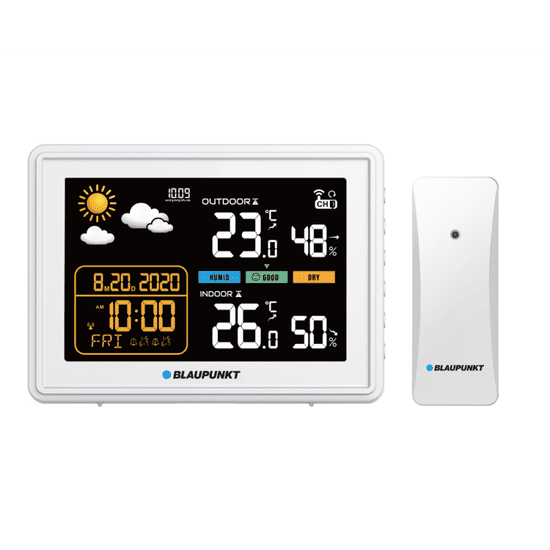 Osigurajte toplinsku udobnost bez obzira na godišnje doba. BLAUPUNKT WS30 meteorološka stanica prikazuje temperaturu i vlažnost u zatvorenom i na otvorenom. Pokazuje je li prostorija previše suha, previše vlažna ili optimalna. Osim toga, prikazuje trenutni atmosferski tlak i vremensku prognozu za nadolazeći dan. Sat s budilicom i kalendarom koristan je u svakodnevnom životu.