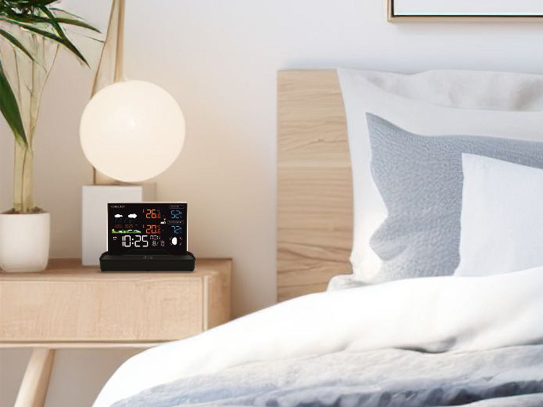 Stanica ima ugrađen veliki LCD ekran u boji, okružen okvirom u modernom stilu, a može se postaviti na bilo koju površinu. Zaslon prikazuje sve podatke, koje je izmjerila stanica i njen priloženi bežični senzor.