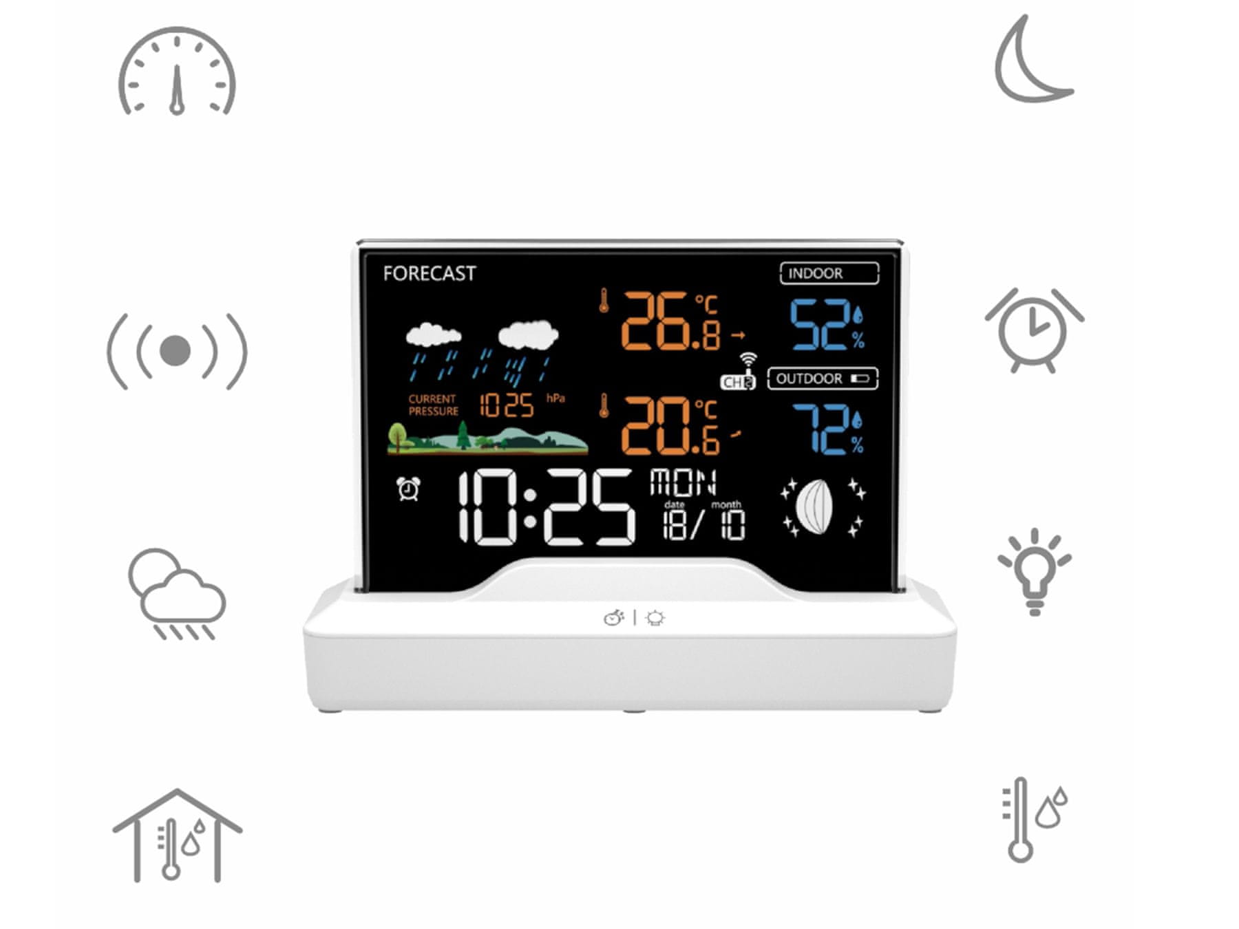 Meteorološka stanica nudi i informacije o mjesečevim mijenama. Pomoću ove funkcije možete jednostavno pratiti mjesečeve mijene. Set također uključuje 1 bežični senzor koji se može postaviti vani ili unutra i mjerit će podatke koje će zatim prikazati meteorološka stanica.
